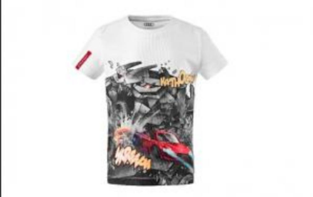 A kis képregény és Audi rajongók számára: Az Audi Sport gyerekpóló, nyomtatott motívummal az Audi R8 képregényről.