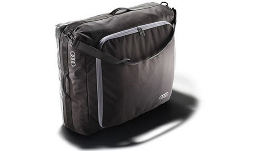 Eredeti AUDI tetőbox táska "L" méretben, fogantyúkkal és vízálló fenékrésszel. A táska a tetőbox méreteihez van igazítva, így az "M"-es és "S"-es táskákkal kombinálva optimális helykihasználtsággal lehet bepakolni a tetőboxba.