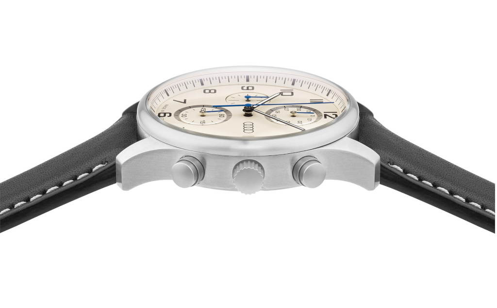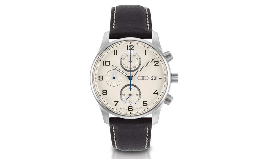 - Bézs színű számlap ezüst és kék részletekkel és Audi gyűrűkkel