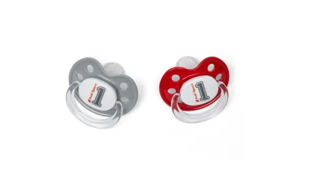 - Egy szürke és egy piros cumi, mindegyik fehér kupakkal és átlátszó gyűrűvel
