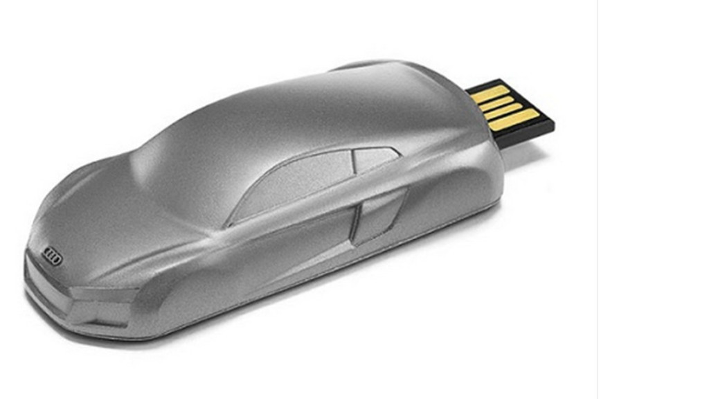 Rozsdamentes acél 8 GB kapacitású USB, frontján Audi logóval, 2.0 interface-el.