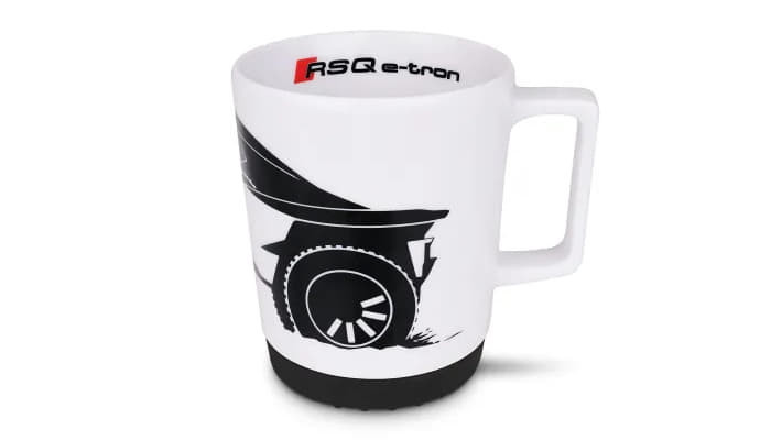 A hűvös RS Q e-tron nyomattal és praktikus szilikon betéttel ellátott porceláncsésze, ideális ajándék minden Audi Sport rajongó számára.