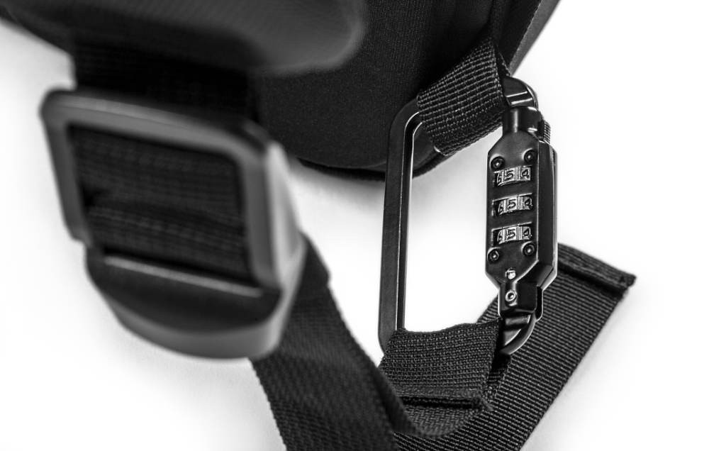 A táska rejtett cipzárakkal rendelkezik a holmijaid fokozott biztonsága érdekében. Egy rejtett zseb RFID-védelemmel védi a kártyáidat a jogosulatlan beolvasástól. Vágásálló anyagból készült. A megerősített EVA hátlap kényelmes viseletet biztosít. A jobb oldali pánton egy integrált cinkötvözet zár található a fokozott védelem érdekében.