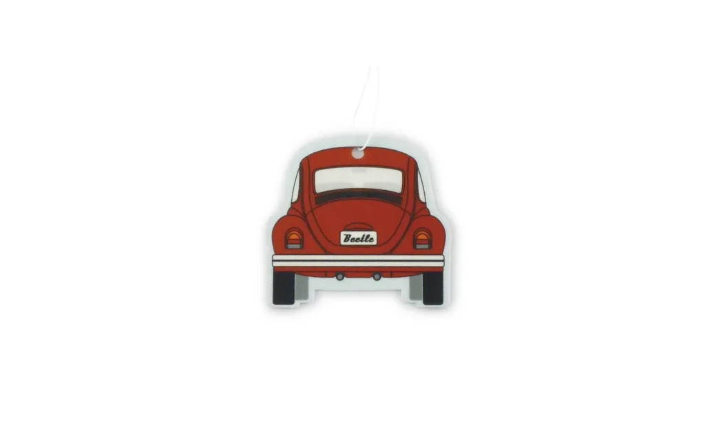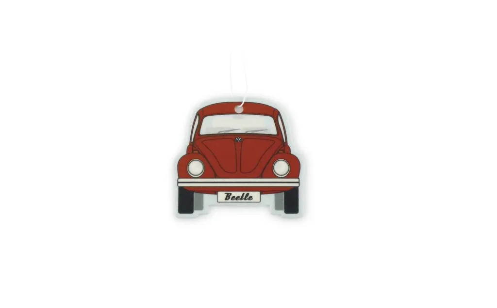 Nagyszerű frissítő, az előlapon VW Beetle, piros színben. A nyári "Melon" illat kellemes frissességet kölcsönöz a járműnek, és nyár érzéseit kelti fel. A légfrissítő kiváló minőségű speciális kartonból készül, mindkét oldalán laminált papírral.