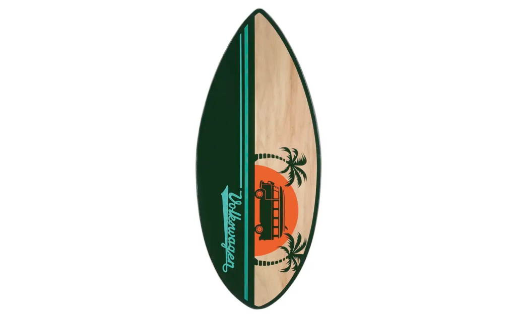 Kiváló minőségű nyárfából készült úszódeszka, a VW T1 busz képével a naplementében. A tábla ideális a skimboardozáshoz.