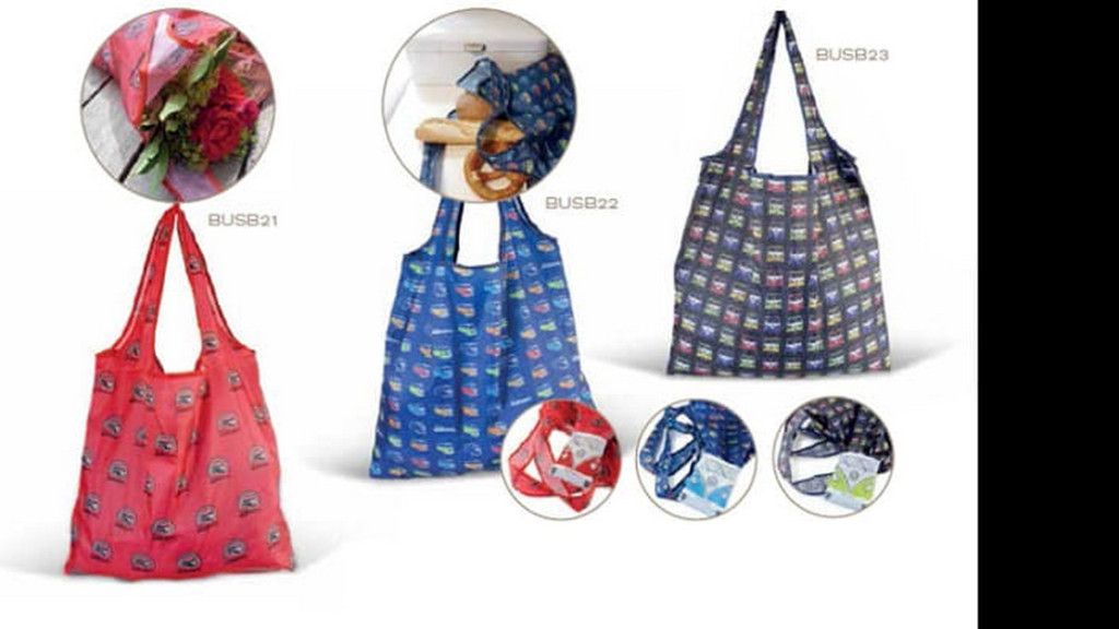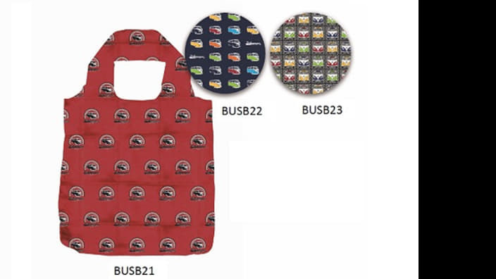 Hosszú fogantyús, összehajtható bevásárló táska többféle Bulli mintával. A táska kapacitása kb. 15 kg.