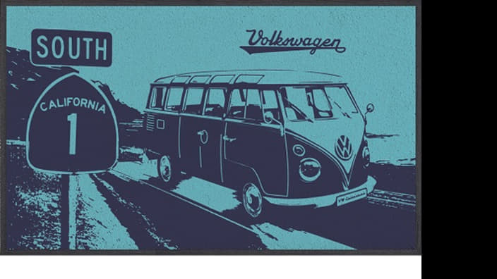 Strapabíró és mosható, praktikus méretű, kiváló minőségű Volkswagen Bulli motívumos lábtörlő.