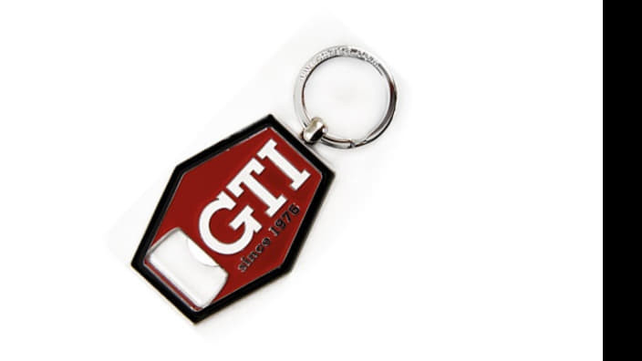A praktikus VW GTI kulcstartó nagyszerű társ szomjas pillanatokban. Ez nem csak a kulcstartót díszíti, hanem egyidejűleg nyitja is a kupakkal ellátott palackokat. A kulcstartó piros hatszög alakú, fekete kerettel és fehér GTI logóval. A “1976 óta” felirat a logó alatt olvasható.
