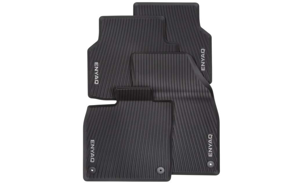 Az elektromos ŠKODA ENYAQ iV padlószőnyegek minden időjárási körülmények között használható, kiváló minőségű TPE anyagból készülnek, megbízhatóan felfogja a szennyeződést és a nedvességet. Ezenkívül csúszásmentesek és könnyen tisztíthatók.