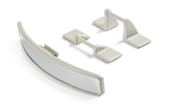 A telepítés nagyon egyszerű. A tükör az autó többfunkciós kamerájának fedelére van rögzítve a belső tükör felett ragasztószalaggal. A gyermektükör nem állítható radiálisan; csak fel-le billenthető.