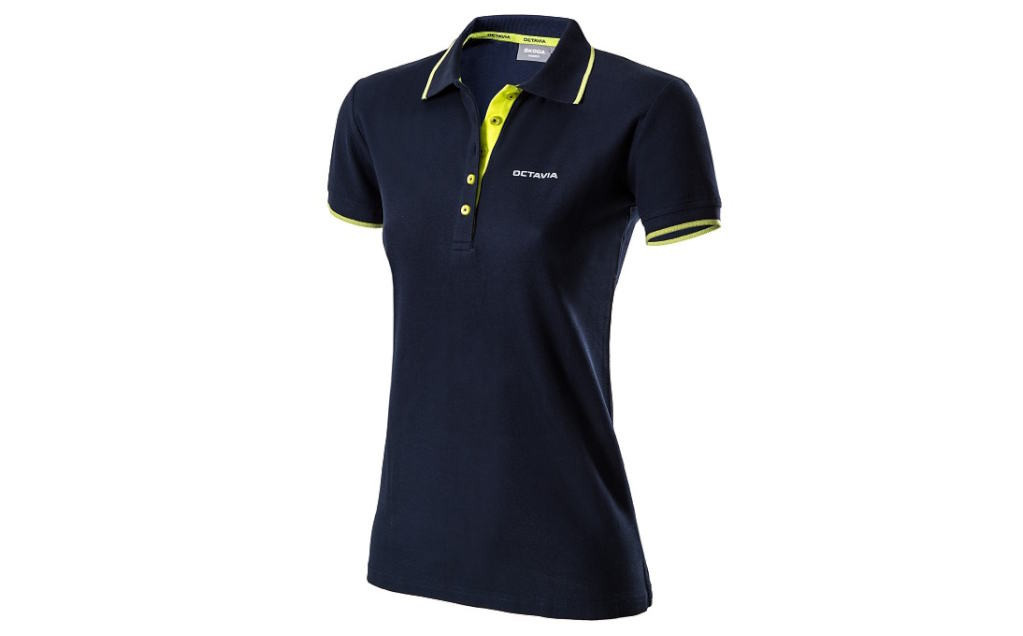 Skoda Octavia női pamut piké póló, sárga színű részekkel.