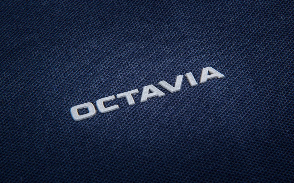 3D-s nyomtatott Octavia és ŠKODA logókkal díszített ruhadarab.