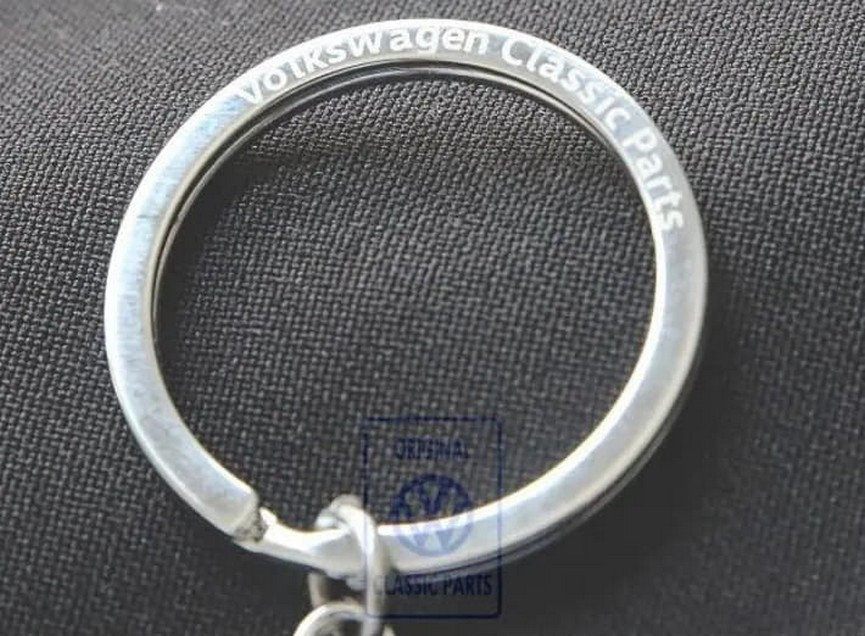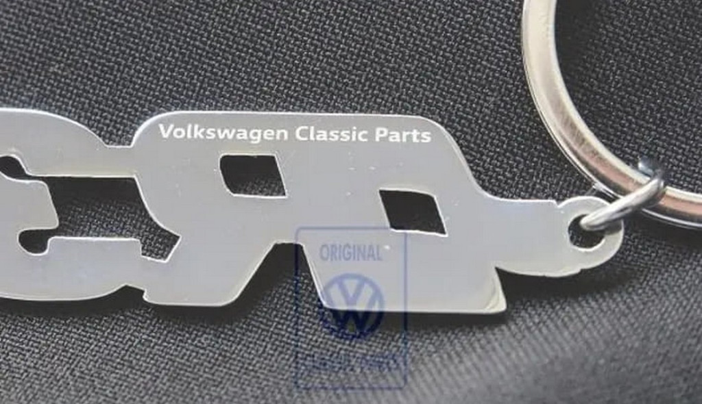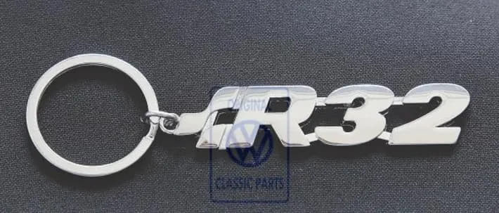 Présöntött cinkből készült kulcstartó R32-es felirat formájában. Felülete magasfényű króm/ezüst. A hátoldalon márkajelzés „Volkswagen Classic Parts” felirattal.