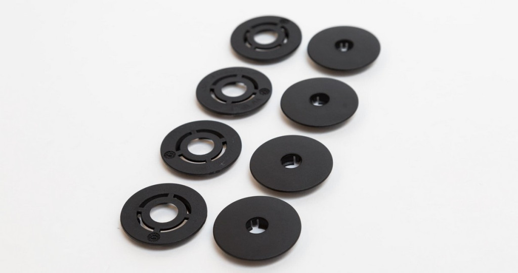 Nyomógombos megoldásként kialakított rögzítőelem, 1 készlet = 8 db, 4 db tartótakaró sapkából + 4 db tartóbetét szőnyegből áll