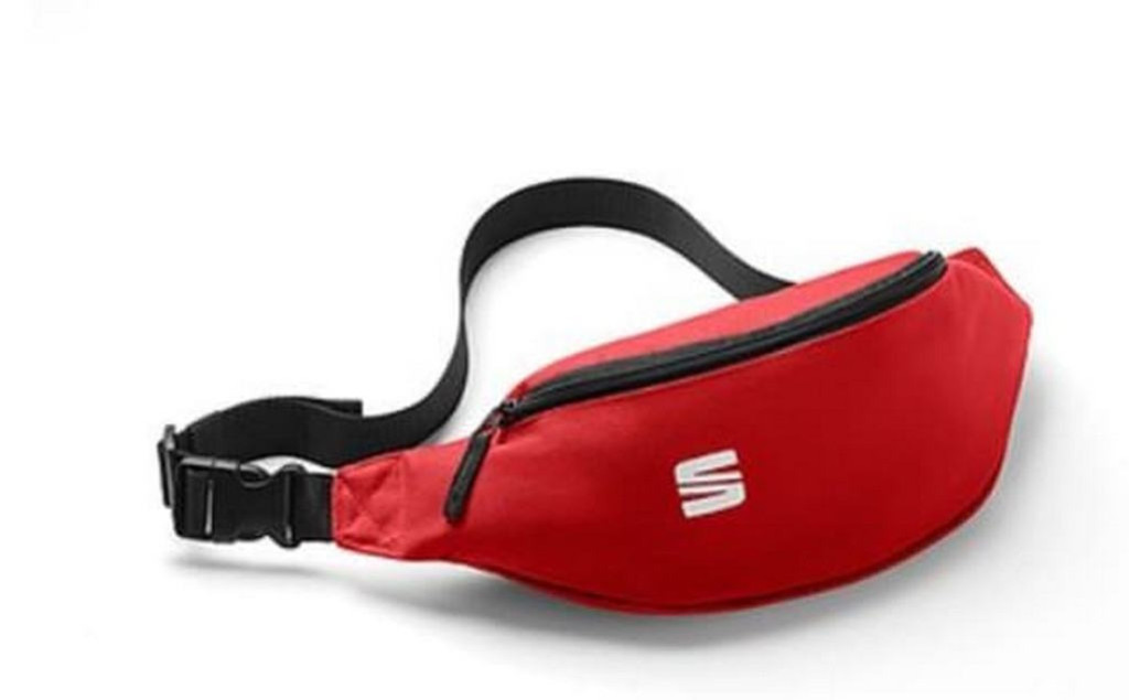 Eredeti Seat övtáska állítható szövetpánttal, klipszes biztonsági zárral és két cipzáras zsebbel.