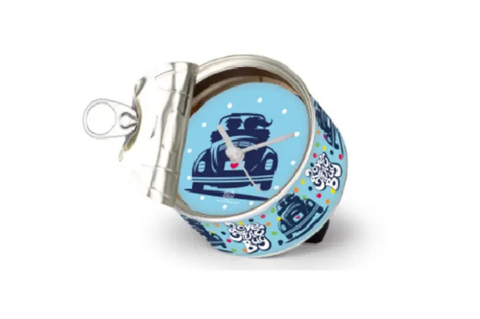 Konzerv formájú óra,mely hûtõmágnesként és íróasztalra helyezve is használható. A termék 1 db 1,5 V – AA elemmel mûködik, melyet a csomagolás nem tartalmaz! Méret: ? 8,5 cm