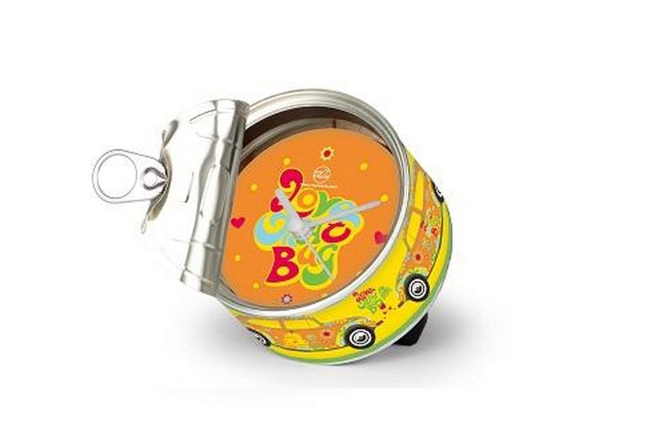Konzerv formájú óra,mely hûtõmágnesként és íróasztalra helyezve is használható. A termék 1 db 1,5 V – AA elemmel mûködik, melyet a csomagolás nem tartalmaz! Méret: ? 8,5 cm