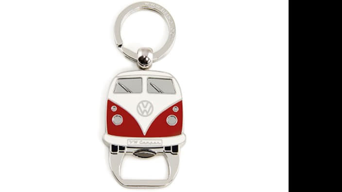 Üvegnyitóval kiegészített, a Bulli frontját ábrázoló kulcstartó.