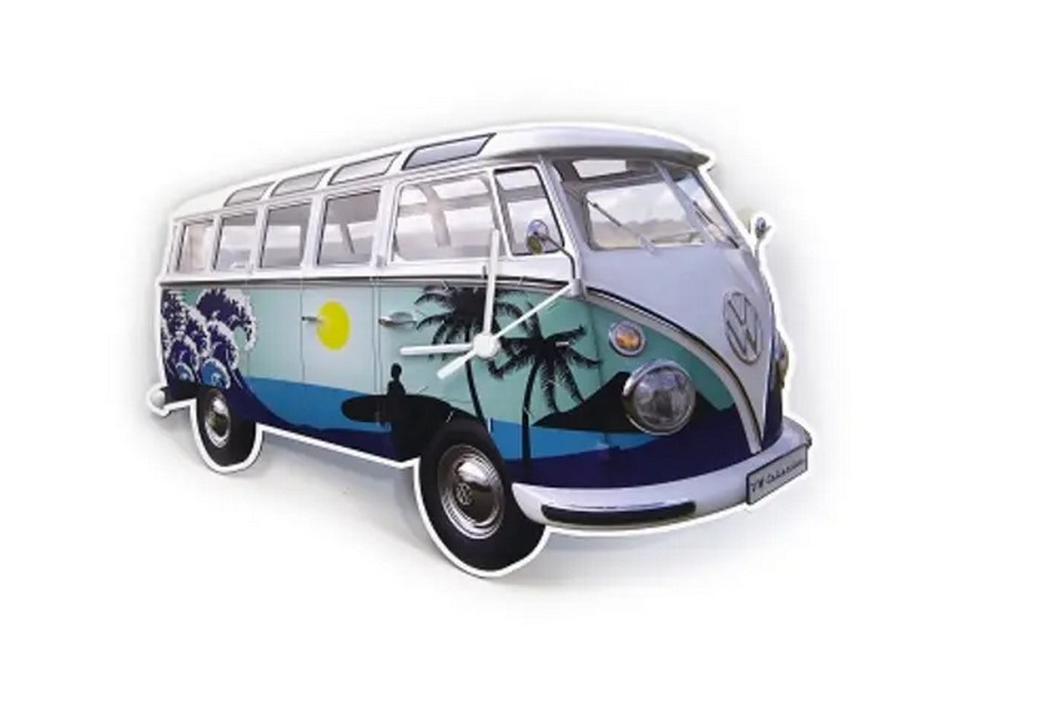 Laminált MDF lapból készült Bulli formájú falióra.A termék 1 db 1,5 V - AA elemmel mûködik, melyet a csomagolás nem tartalmaz! Mérete: 28x18x2,5 cm Made in Germany