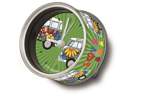 Konzerv formájú óra, mely hűtőmágnesként és íróasztalra helyezve is használható. A termék 1 db 1,5 V – AA elemmel működik, melyet a csomagolás nem tartalmaz! Méret: Ø 8,5 cm