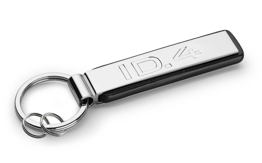 A VW ID.4 kiváló minőségű fém kulcstartó PU bőrrel kombinálva, az ID.4 logó gravírozva.