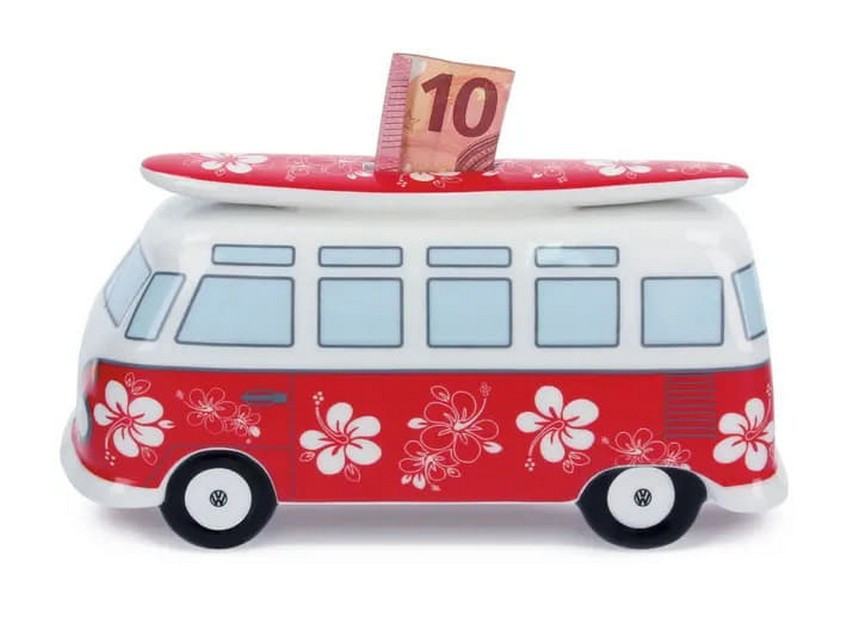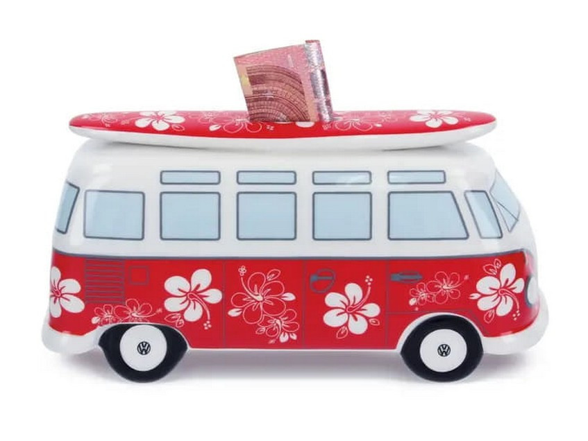 A legendás VW T1 Samba formájú, rendkívül színes persely minden takarékoskodót lenyűgöz.