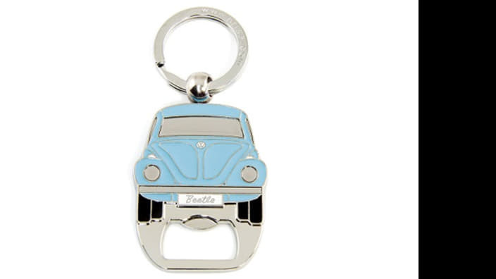 Üvegnyitóval kiegészített, a VW Bogár frontját ábrázoló kulcstartó.