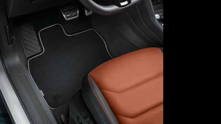 Strapabíró, sűrűn szőtt velúr anyagból készült, az első pár szőnyegen, hímzett típusfelirat látható.