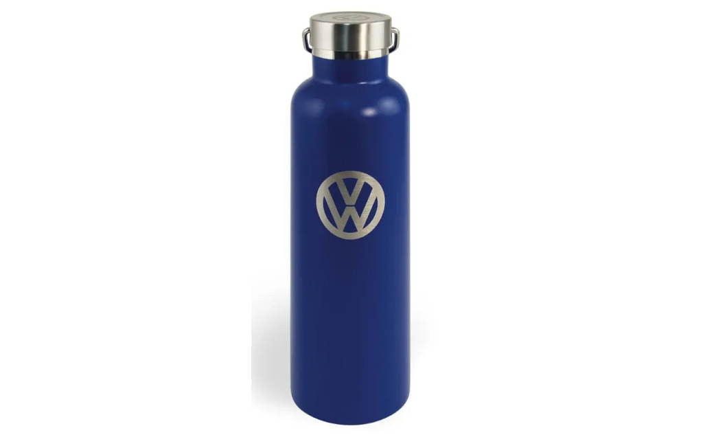 Duplafalú, rozsdamentes acél thermokulacs Volkswagen logóval, mely a meleg ital hőmérsékletét 18 óráig, a hideg italok hőmérsékletét 24 óráig képes megőrizni. Kupakja BPA mentes szilikon tömítéssel.