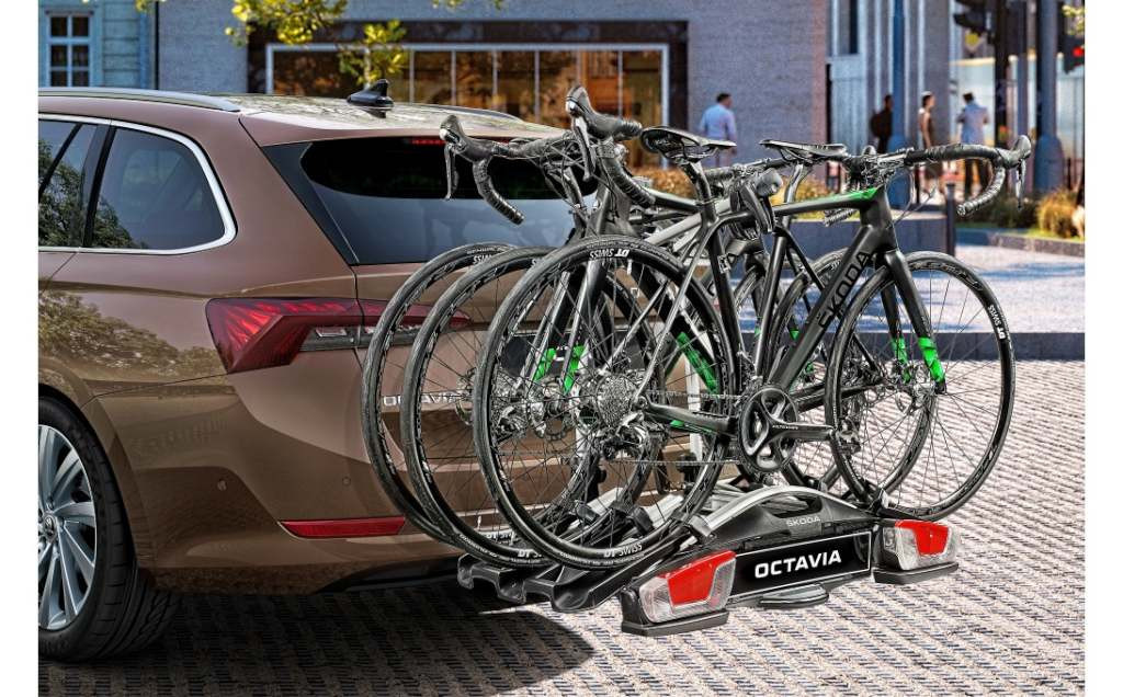 A Škoda Eredeti Tartozékok kínálatában található vonóhoroghoz való kerékpártartó ideális vonóhoroggal felszerelt járművekhez. Elegáns stílusa és masszív kialakítása tökéletesen kiegészíti a Škoda járművek megjelenését. A tartó rendkívül masszív, könnyen felszerelhető és könnyen használható – a rögzítéshez csak kissé meg kell emelni a kerékpárt. A tartó legfeljebb három kerékpár szállítására alkalmas. A maximálisan megengedett terhelés a kerékpártartó szerelési kézikönyvében található, és a vonóhorog maximálisan megengedett terhelésétől függ. A kerékpártartó zárható, hogy megvédje a szállított kerékpárokat a lopástól. Teljesen megrakott állapotban is lehajtható, hogy bármikor hozzáférhessen a csomagtérhez. A rendkívül tartós acélcső szerkezet és az eloxált alumíniumból készült sínek kombinációja kivételesen erőssé, ugyanakkor könnyűvé teszi, miközben megbízható védelmet nyújt az időjárás viszontagságaival szemben. A vonóhoroghoz való kerékpártartó számos minőségi teszten, biztonsági teszten és igényes tesztvezetésen esett át. A vonóhorog maximális teherbírása a jármű forgalmi engedélyében található. Biztonsági okokból ezt az értéket tilos túllépni. A vonóhorog golyójától való távolság függvényében megengedett csapágyterhelést mutató ábra a használati útmutatóban található.